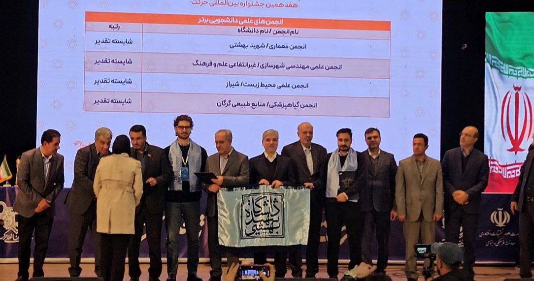 انجمن‌های علمی دانشجویی دانشگاه شهید بهشتی در هجدهمین جشنواره بین‌المللی حرکت که از ۱۰ الی ۱۳ آذرماه به میزبانی دانشگاه تبریز و با حضور نمایندگان ۱۱۳ دانشگاه از سراسر کشور برگزار شد، موفق به کسب ۱۰ عنوان برتر در بخش‌های مختلف این رویداد ملی شدند. انجمن‌های علمی دانشگاه شهید بهشتی در بخش نمایشگاهی جشنواره با ارائه دستاوردها و فعالیت‌های علمی، پژوهشی و فرهنگی، توانمندی‌های دانشجویان دانشگاه را معرفی کردند. در مراسم اختتامیه جشنواره که با حضور دکتر سیمایی صراف، وزیر علوم، تحقیقات و فناوری، دکتر بهرام سرمست، استاندار آذربایجان شرقی، دکتر شالچی، معاون فرهنگی و اجتماعی وزارت علوم و دکتر اعلمی، رئیس دانشگاه تبریز برگزار شد، از انجمن‌های علمی برتر تقدیر به عمل آمد: