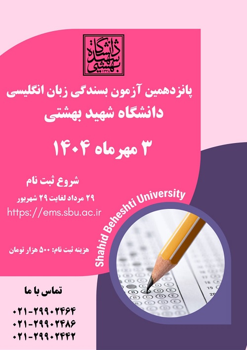 پانزدهمین آزمون بسندگی زبان انگلیسی دانشگاه شهید بهشتی، در روز پنجشنبه سوم مهرماه 1404، ساعت 9 صبح ویژه دانشجویان مقطع دکتری و داوطلبان آزاد برگزار برگزار می شود.