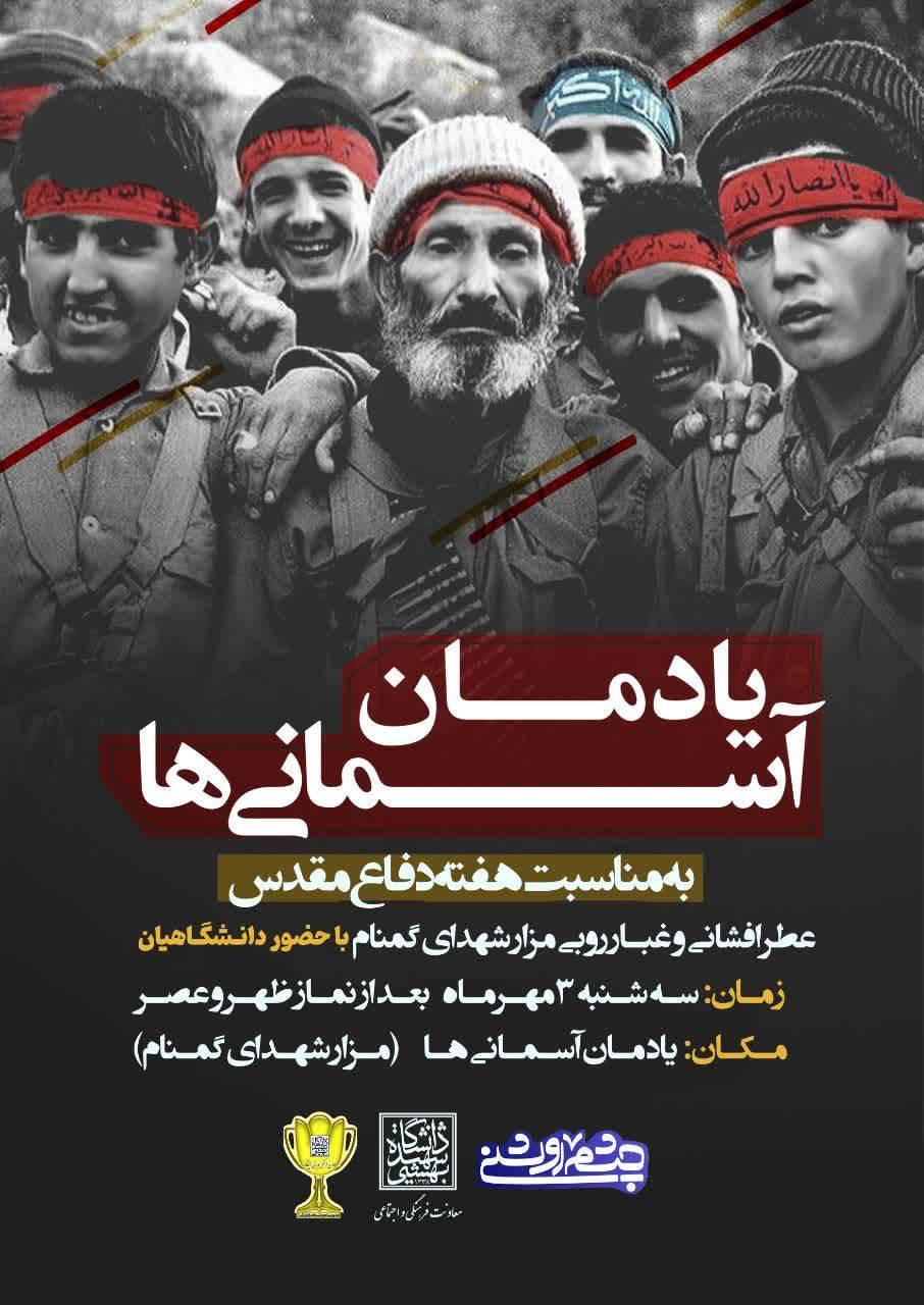 آیین گرامیداشت هفته دفاع مقدس، با عطر افشانی گلزار شهدای گمنام دانشگاه شهید بهشتی، روز سه شنبه  سوم مهرماه همزمان با شروع سال تحصیلی جدید و با حضور اعضای هیات رئیسه و مشارکت دانشگاهیان و به همت معاونت فرهنگی و اجتماعی دانشگاه و همراهی کانون فرهنگی ورزشی ایثار انجام شد.